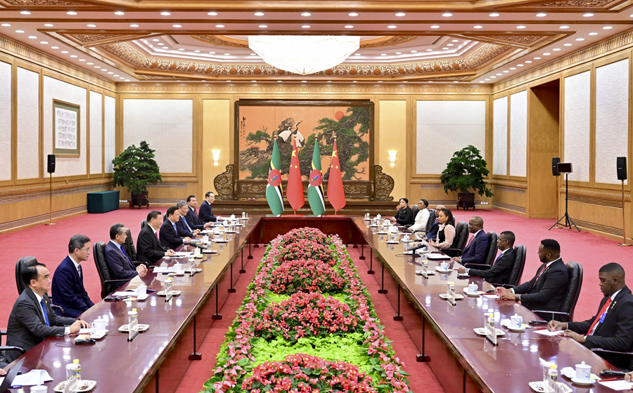 3月25日下午,国家主席习近平在北京人民大会堂会见来华进行正式访问的多米尼克总理斯凯里特。