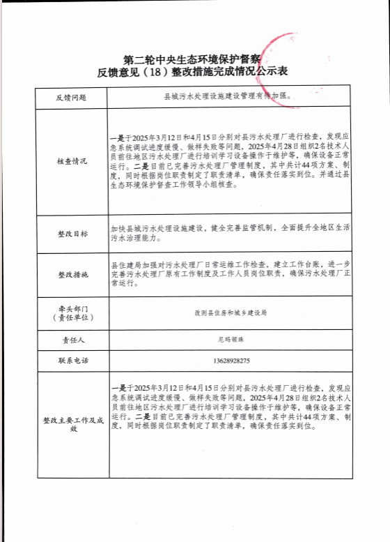 第二轮中央生态环境保护督察反馈意见17-2/18整改措施完成情况公示表