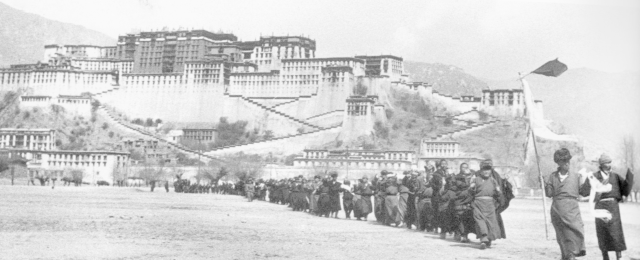 1959年3月10日,西藏反动集团发动全面叛乱,人民解放军奉命迅速平息叛乱。图为1959年3月22日,集结在布达拉宫里的叛匪列队出来投降
