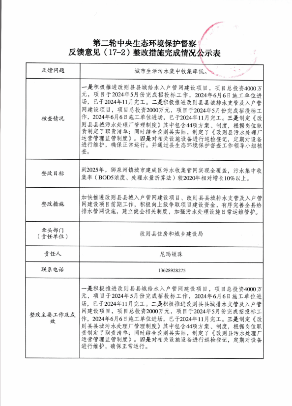 第二轮中央生态环境保护督察反馈意见17-2/18整改措施完成情况公示表