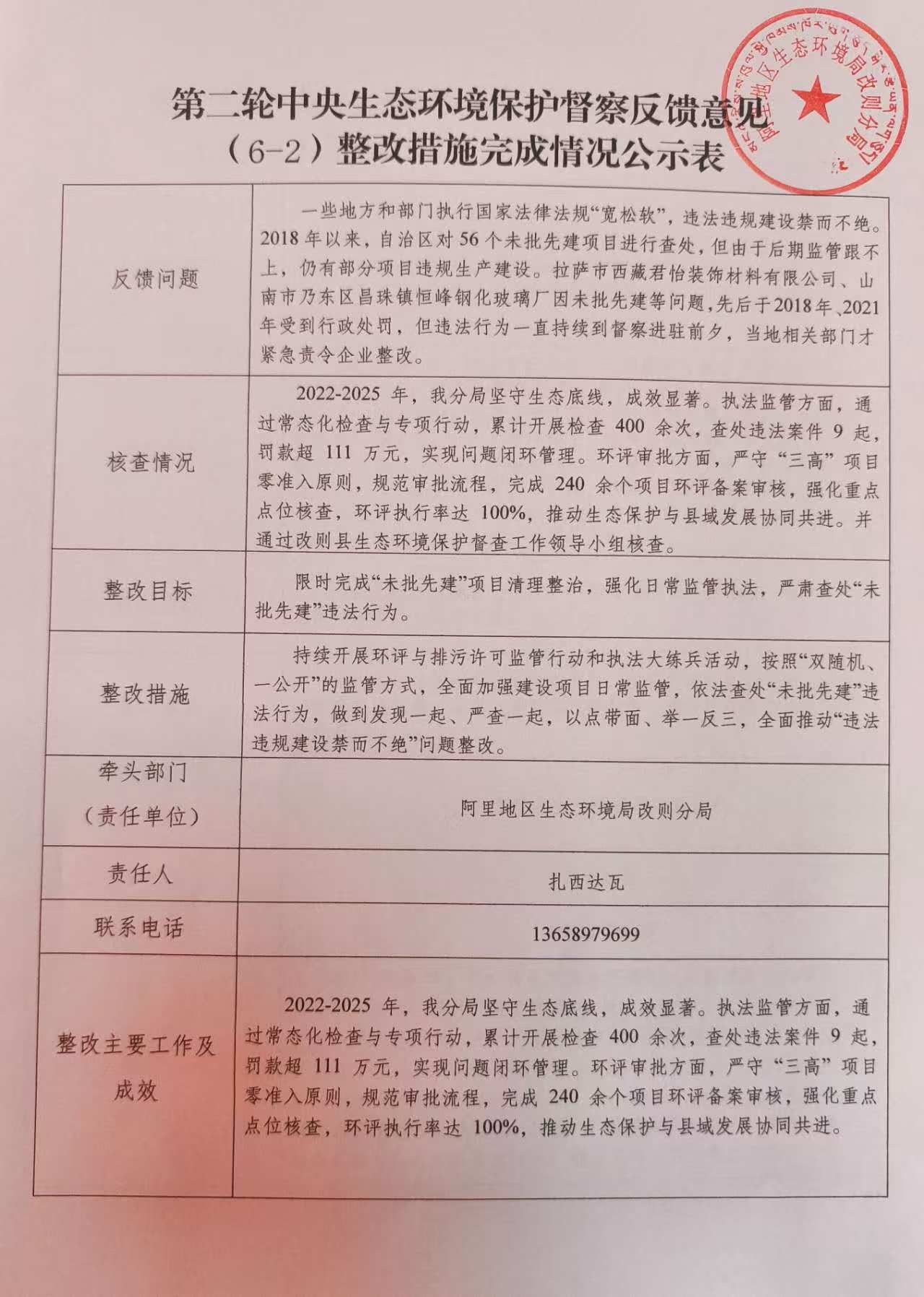 第二轮中央生态环境保护督察反馈意见(6-2)整改措施销号台账